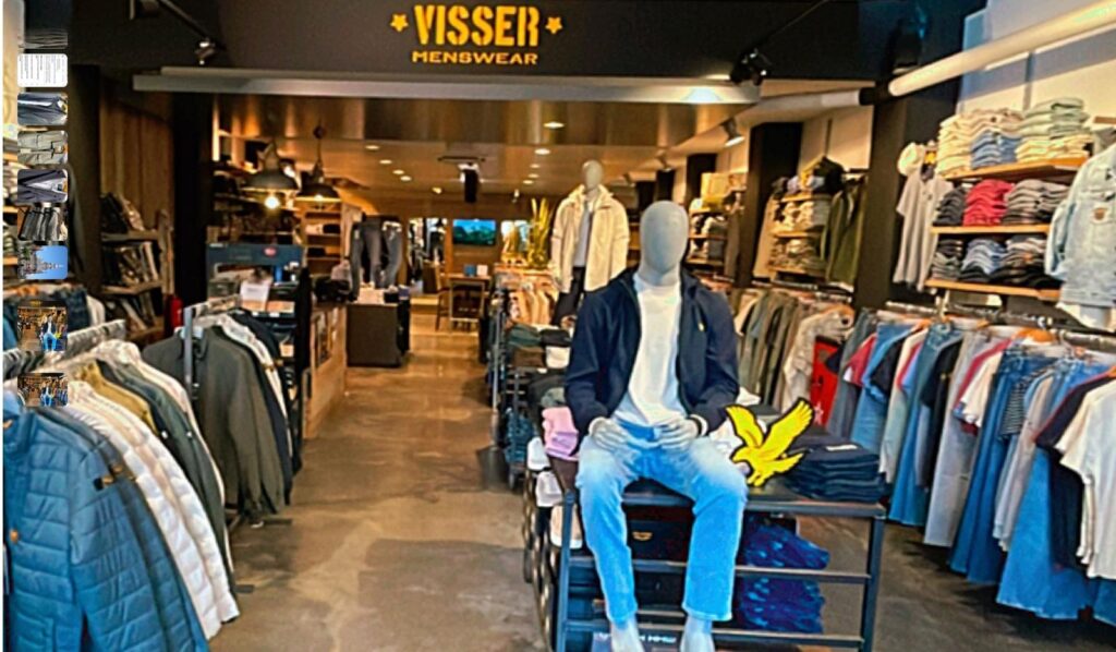 De winkel heeft een industrieel karakter. Daarnaast is de uitstraling van VISSER MENSWEAR trendy, stoer en hier en daar een vleugje formeel.